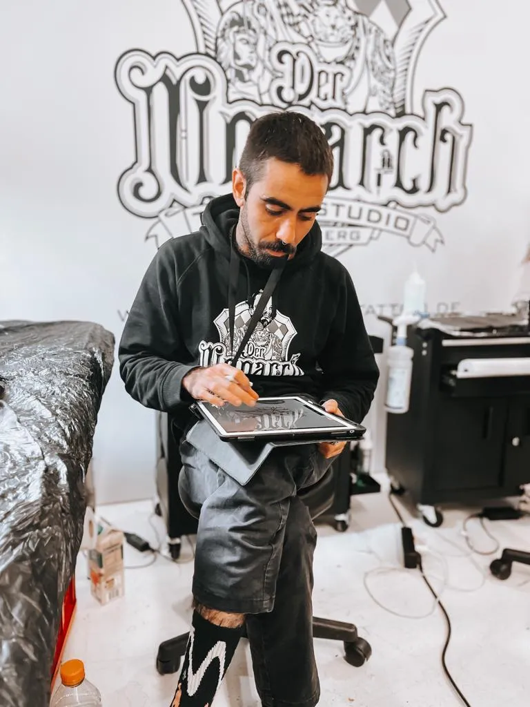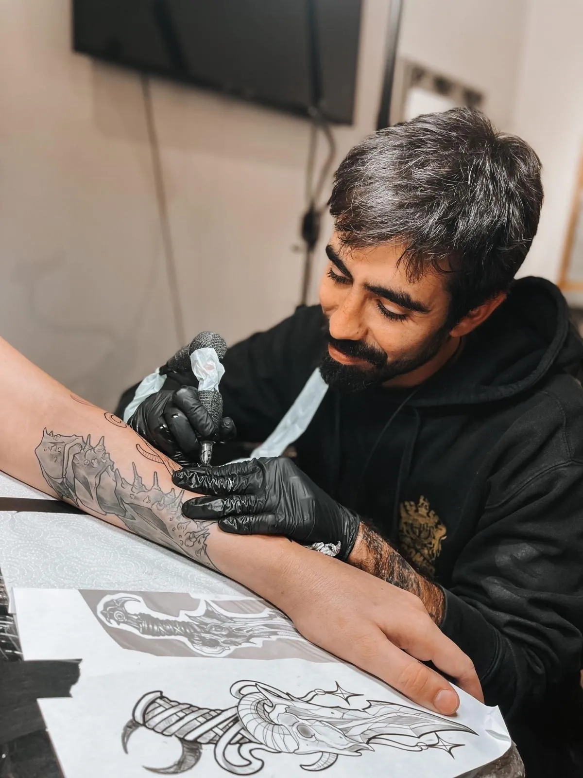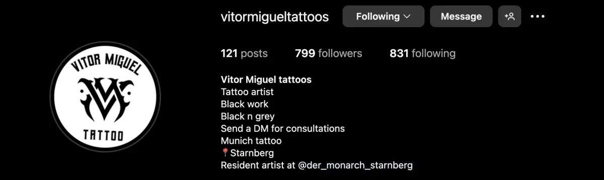 Mein Name ist Vitor. Ich bin ein brasilianischer Tätowierer aus Rio und arbeite seit fünf Jahren in Europa. Vor anderthalb Jahren begann ich als Resident Artist bei "Der Monarch" in Starnberg zu arbeiten. Das Studio ist super gemütlich und entspannt und das gesamte Team sorgt dafür, dass sich Alle, die zu uns kommen, wohlfühlen. Meine Arbeiten kombinieren verschiedene Stile in Schwarz und Grau. Ich bemühe mich stets, die Ideen meiner Kund:innen in einem aussagekräftigen, einzigartigen und langlebigen Design zu vereinen. So stelle ich sicher, dass du nicht nur ein hochwertiges Tattoo erhältst, sondern auch eins, das deine Geschichte, Ideen und dich selbst als Menschen repräsentiert.